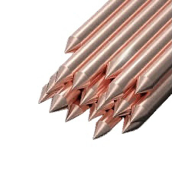 - 本產品其材料規格製造及試驗皆符合國際規範之要求,並獲得台灣電力公司所採用,符合安全標準。在材料及構造方面,其鋼心素材符合ASTM A108 UNS/G10180冷抽鋼棒特性,並採用高強度合金鋼電鍍式緊密外包銅層. 外包銅層厚度至少在0.25m/m,同時,具有不脫銅皮、導電效果佳導電率99.7%以上的優異表現。在彎曲強度試驗方面,先取接地銅棒25-30cm公分.取中心點放在油壓式壓床V型模具上,利用上層模具向下壓擠,使試棒彎曲30度以上,抽查彎曲後之外角部份銅層無裂痕,內部之銅層無皺紋,測試後符合標準。而在附著試驗及方法方面,以車床切削銅棒自表層內深為1.5公厘(m/m)以上,長度為5公分(cm) 以上之棒屑,外包銅層與鋼金屬結合處無剝離現象,測試合格。